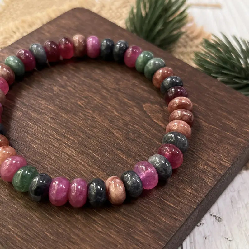 レインボートルマリンハーモニーブレスレットは、単なるジュエリー以上のものです — それは保護と感情のバランスの輪です。トルマリンは、何世紀にもわたり、強力な浄化の石として大切にされており、ネガティブなエネルギーを吸収し、調和を促進すると信じられています。